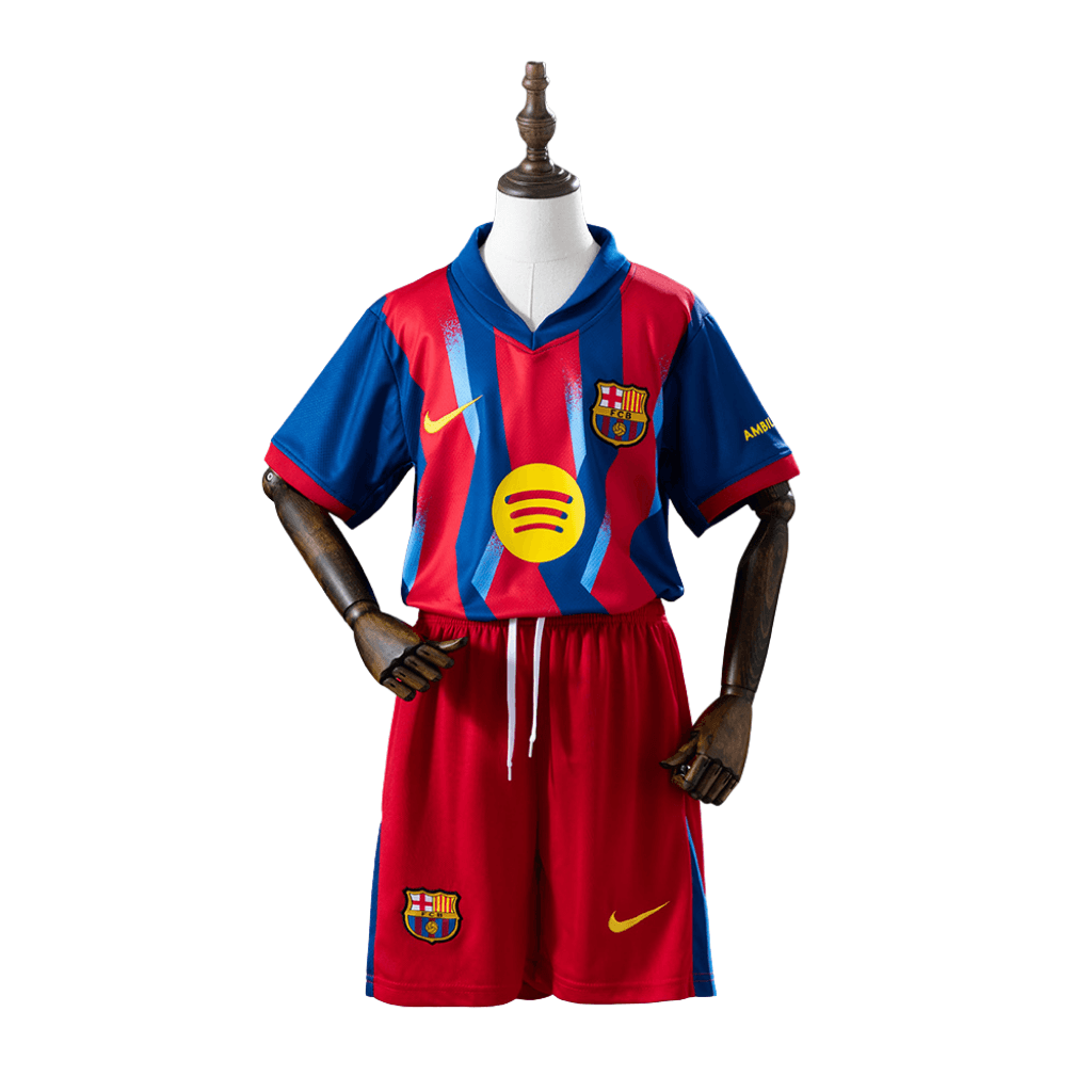 Hace veinte años, el FC Barcelona firmó un 3-0 en Madrid que consagró a una leyenda y le abrió el camino a otra. Esta camiseta rinde homenaje a aquel día histórico con detalles que simbolizan cada uno de los tres goles y al inolvidable brasileño que firmó dos de ellos.