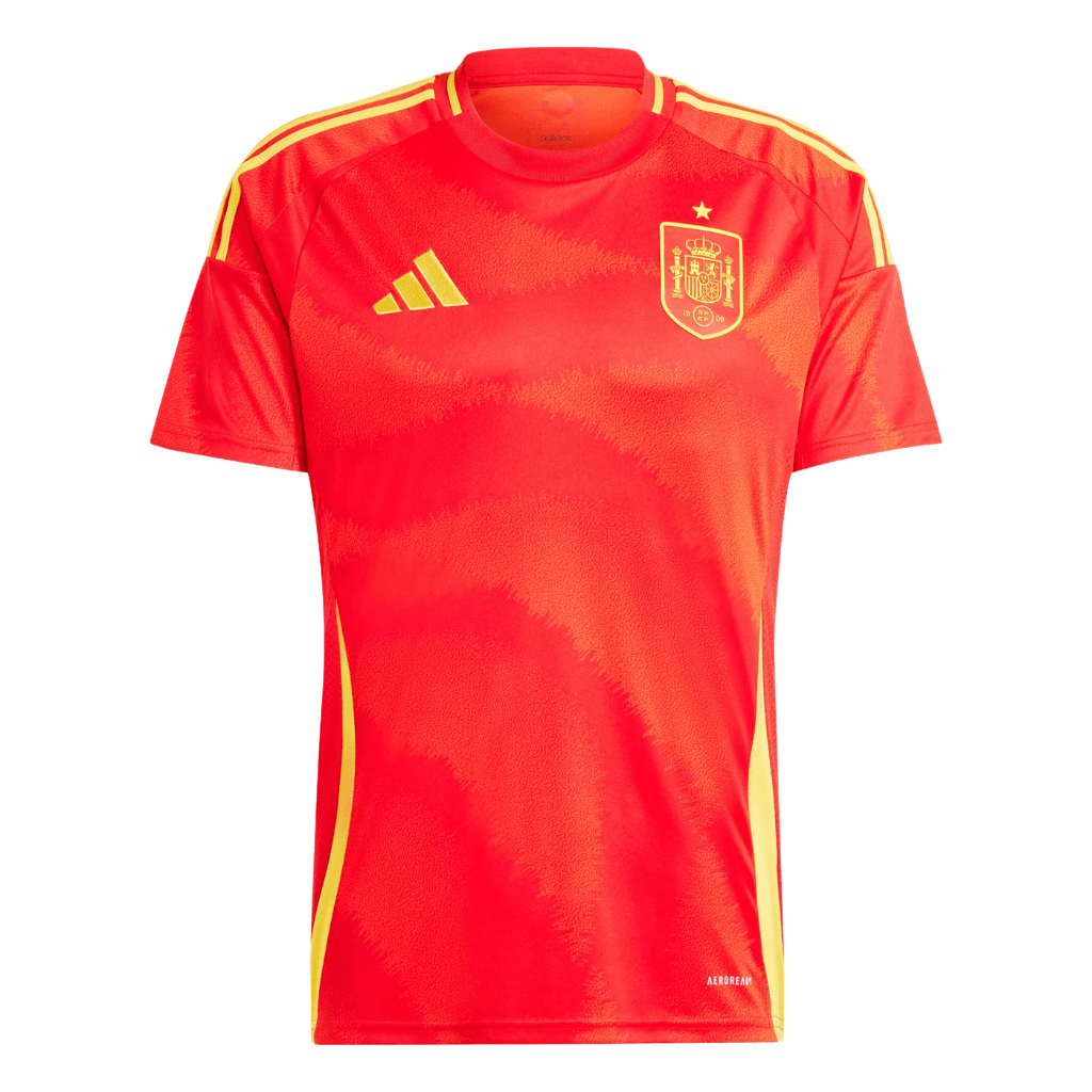 Una arraigada tradición futbolística. Esta camiseta adidas de la primera equipación de España luce un llamativo estampado del mismo tono inspirado en la belleza del clavel, nuestra flor nacional, y en el movimiento rítmico de las olas del mar. Diseñada para la afición, se ha confeccionado en un tejido transpirable AEROREADY que mantiene la piel seca mientras animas sin descanso. El escudo de la selección cosido en el pecho y el clavel en la nuca ponen el broche final.